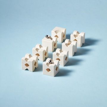 Balení obsahuje 8 funkčních kostek v barvě slonová kost, 2 kuličky z ušlechtilé oceli, návod v češtině, angličtině a němčině, vše vloženo do papírové krabičky vyrobené z recyklovaného papíru.